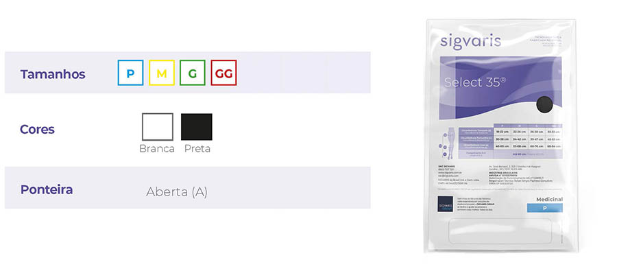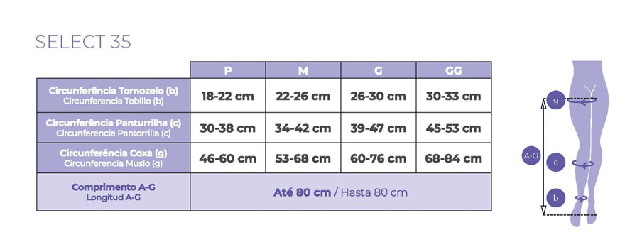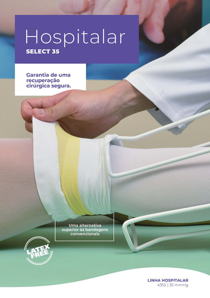 Com compressão graduada de 35 mmHg, a Select 35 auxilia na profilaxia da trombose e tromboflebite, alivia a dor pós operatória, previne edemas e diminui a hiperpigmentação, otimizando os resultados dos procedimentos vasculares.