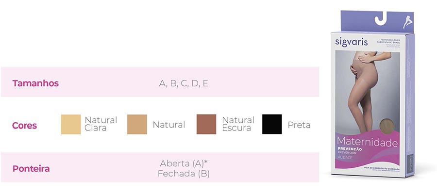 O uso da meia Maternidade Prevenção Audace é recomendado desde o início da gravidez para prevenir doenças venosas, e garantir maior conforto nas pernas, evitando inchaços e dores no decorrer do dia.