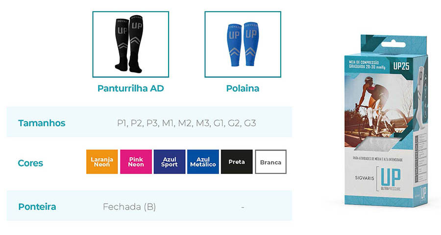 A linha UP-ULTRAPRESSURE foi desenvolvida e projetada para atuar como um músculo extra, comprimindo suavemente as paredes das veias, melhorando a circulação, além de auxiliar a melhora da fisiologia muscular do atleta.